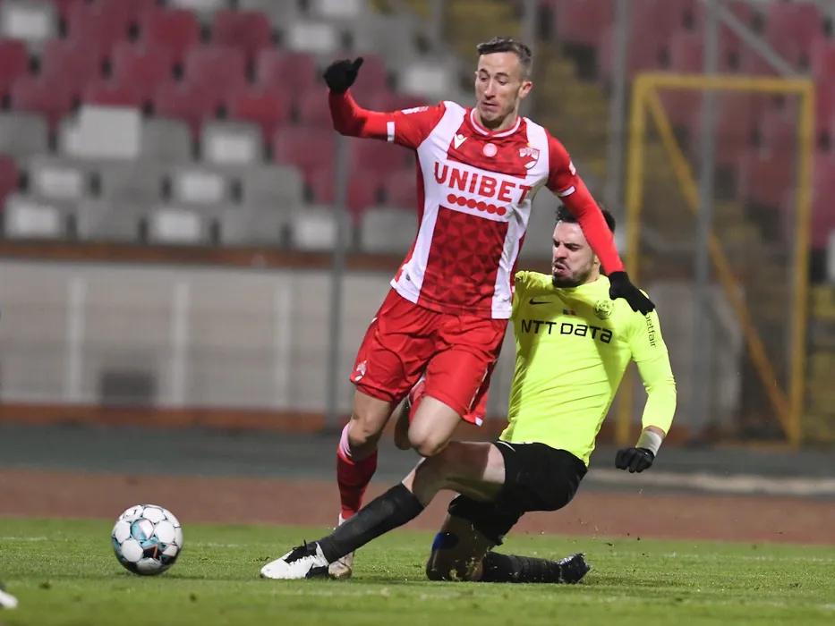 Juan del Carmen Camara Mesa si Andrei Andonie Burca in meciul de fotbal dintre Dinamo Bucuresti si CFR Cluj, contand pentru Liga 1 Casa Pariurilor, desfasurat fara spectatori pe stadionul Dinamo din Bucuresti, joi 17 decembrie 2020. © FOTO:Razvan Pasarica/SPORT PICTURES