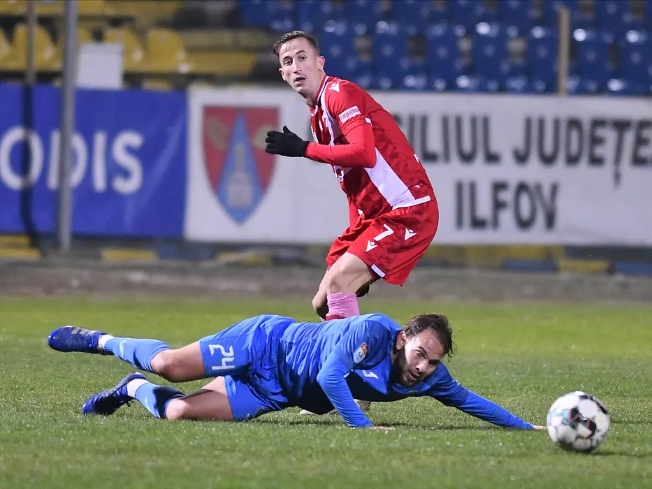 Juan del Carmen Camara Mesa si Juan Bautista Cascini in meciul de fotbal dintre Academica Clinceni si Dinamo Bucuresti, contand pentru Liga 1 Casa Pariurilor, desfasurat pe Stadionul Municipal Ion Comsa din Calarasi, duminica 20 decembrie 2020. © FOTO:Razvan Pasarica/SPORT PICTURES