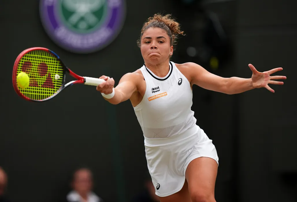 07 July 2024, United Kingdom, London: Italian tennis player Jasmine Paolini in action against US' Madison Keys during their women's singles round of 16 tennis match, on day seven of the 2024 Wimbledon Championships at the All England Lawn Tennis and Croquet Club, London. Photo: Jordan Pettitt/PA Wire/dpa