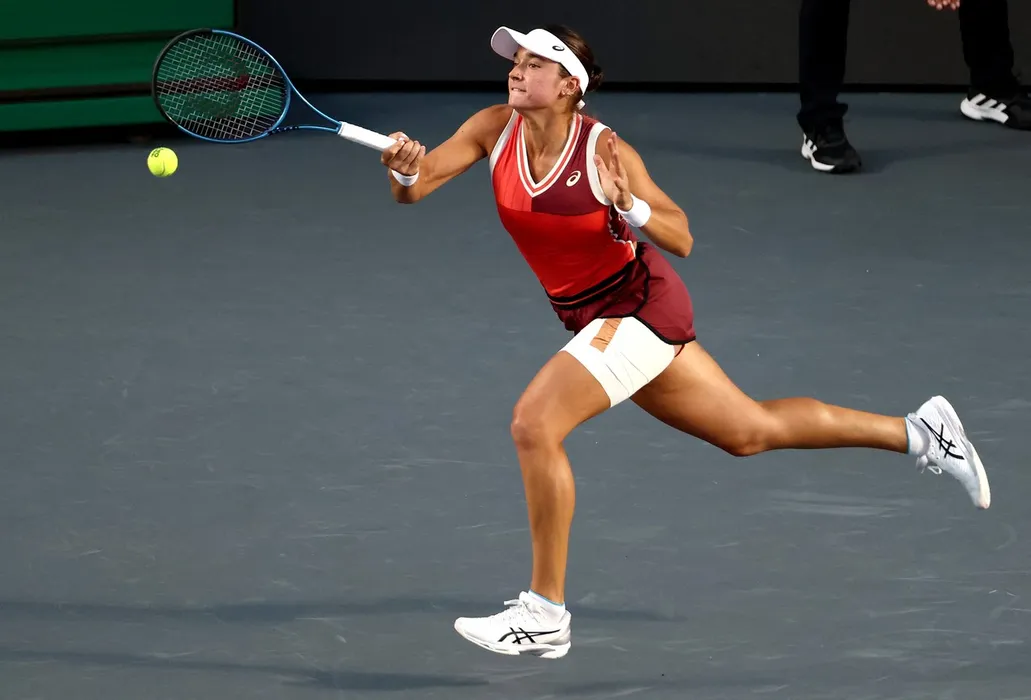USA's Caroline Dolehide returns the ball to Greece's Maria Sakkari during the women's singles final tennis match of the WTA Guadalajara Open in Zapopan, Mexico, on September 23, 2023.,Image: 807858283, License: Rights-managed, Restrictions: , Model Release: no