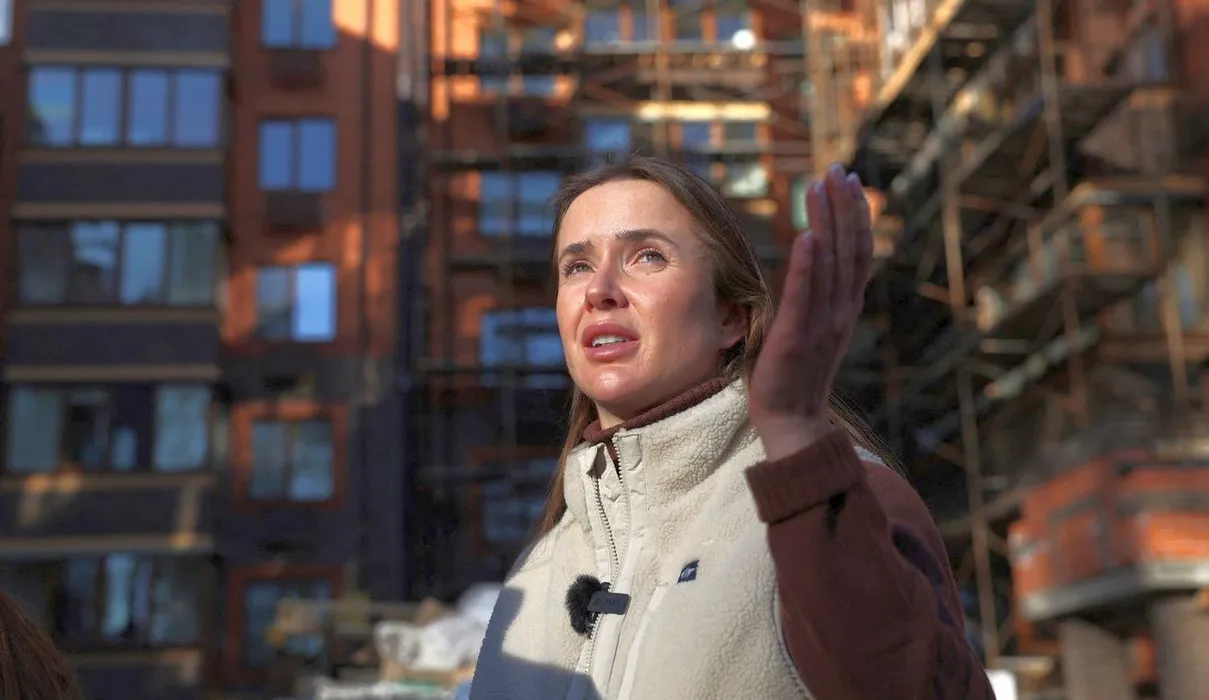 Ambassador of UNITED24 fundraising platform, Ukrainian professional tennis player Elina Svitolina visits the reconstruction site of a building, which was damaged in last year's attacks in Irpin, outside Kyiv on November 7, 2023, amid the Russian invasion of Ukraine.,Image: 820451718, License: Rights-managed, Restrictions: , Model Release: no