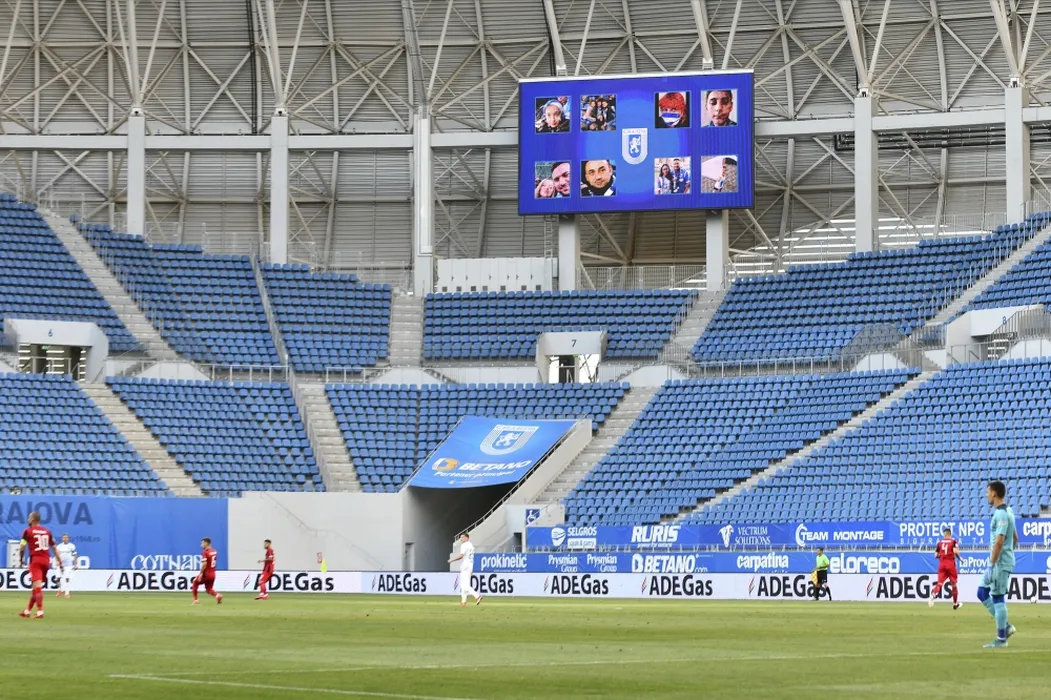 Jucătorii Craiovei au salutat Peluza Nord, simbolic. „De ce să nu fie spectatori? Îi vrem pe stadion!”. Ce scandare s-a auzit cel mai des la staţia de amplificare