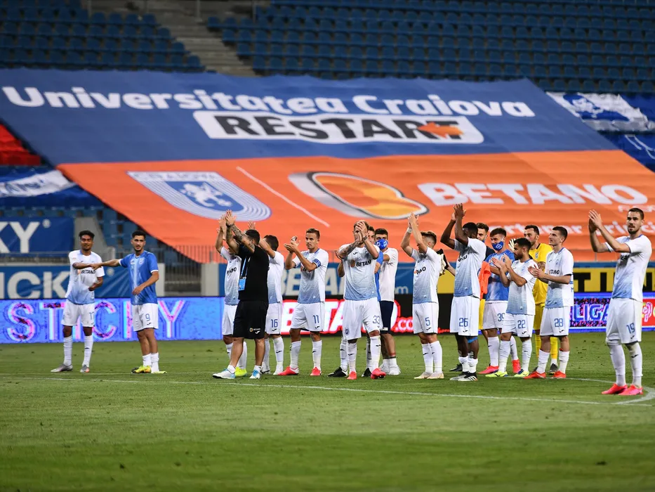 Jucătorii Craiovei au salutat Peluza Nord, simbolic. „De ce să nu fie spectatori? Îi vrem pe stadion!”. Ce scandare s-a auzit cel mai des la staţia de amplificare