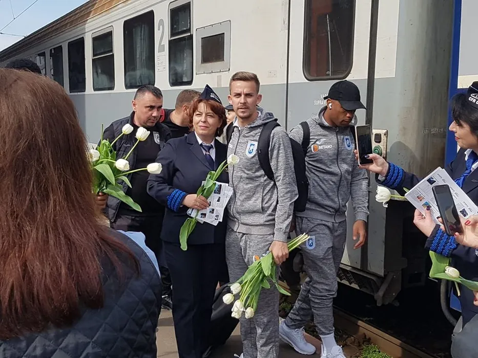 Jucătorii Craiovei, baie de mulțime înainte de plecarea cu trenul spre București. În gara din Bănie a răsunat imnul echipei de fotbal | VIDEO & FOTO