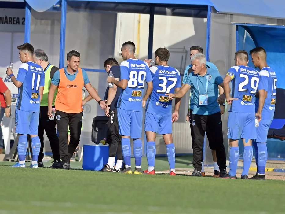 Ilie Poenaru si Marin Duna la o puza de hidratare alaturi de fotbalistii din Clinceni in meciul de fotbal dintre Academica Clinceni si Astra Giurgiu, din cadrul Ligii 1 Casa Pariurilor, desfasurat pe Stadionul Ion Comsa din Calarasi, vineri 13 septembrie 2019. © FOTO:Razvan Pasarica/SPORT PICTURES