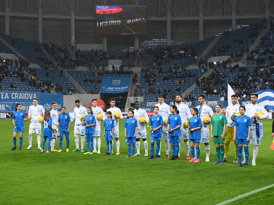 Fotbalistii craioveni la startul meciului de fotbal dintre Universitatea Craiova si FC Arges, contand pentru Superliga Superbet, desfasurat pe Stadionul Ion Oblemenco din Craiova, miercuri 1 martie 2023. © FOTO:Razvan Pasarica/SPORT PICTURES