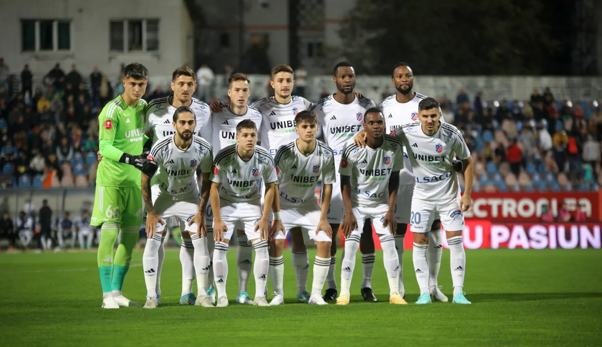 Echipa botoșeneană la startul meciului de fotbal dintre FC BOTOȘANI și FC UNIVERSITATEA CLUJ, contând pentru SUPERLIGA SUPERBET, desfășurat pe Stadionul Municipal din Botoșani, luni 30 octombrie 2023. © FOTO: Ionuț TABULTOC/SPORT PICTURES