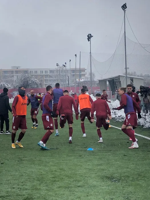 Jucătorii de la Rapid și U Cluj au dat împreună zăpada de pe teren! Costel Enache a trecut și el la lopată | FOTO & VIDEO EXCLUSIV