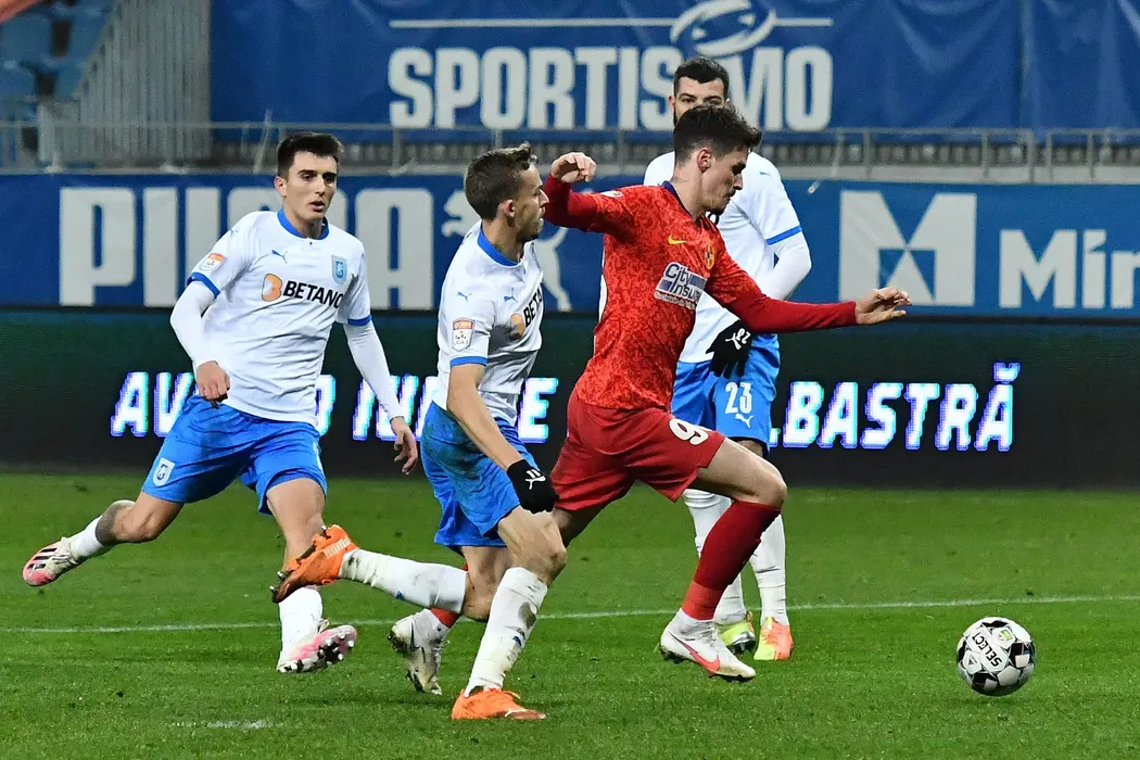 Echipele U Craiova si FC FCSB (echipament rosu) s-au intalnit intr-o partida disputata in etapa 14 din Liga I la fotbal, vineri 18 decembrie 2020, pe stadionul Ion Oblemenco din Craiova. REMUS BADEA / MEDIAFAX FOTO