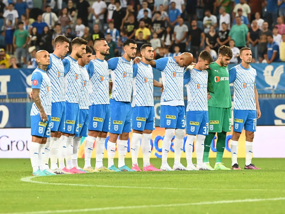 Fotbalistii craioveni la startul meciului de fotbal dintre Universitatea Craiova si Otelul Galati, contand pentru Superliga Superbet, desfasurat pe Stadionul Ion Oblemenco din Craiova, luni 24 iulie 2023. © FOTO:Razvan Pasarica/SPORT PICTURES
