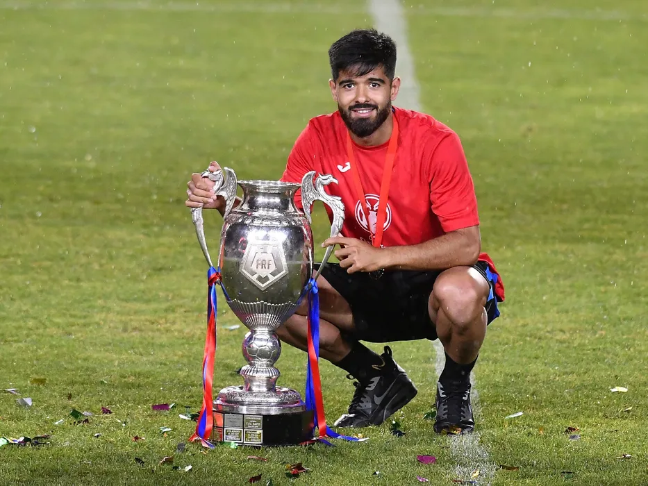 Ionut Vina pozeaza alaturi de trofeu dupa castigarea Cupei Romaniei in urma meciului de fotbal impotriva celor de la Sepsi OSK Sfantu Gheorghe, disputat fara spectatori pe Stadionul Ilie Oana din Ploiesti, miercuri 22 iulie 2020. © FOTO:Razvan Pasarica/SPORT PICTURES