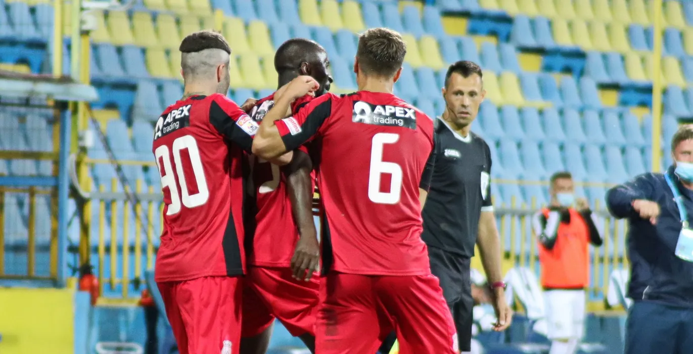 Jucatorii echipei AFC Astra reactioneaza dupa inscrierea unui gol in meciul de fotbal dintre Gaz Metan Medias si AFC Astra Giurgiu din etapa 8 a play-off-ului Ligii 1 Casa Pariurilor, disputat pe stadionul Gaz Metan din Medias, vineri, 17 iulie 2020.© FOTO:Valentin Macrea/Sport Pictures
