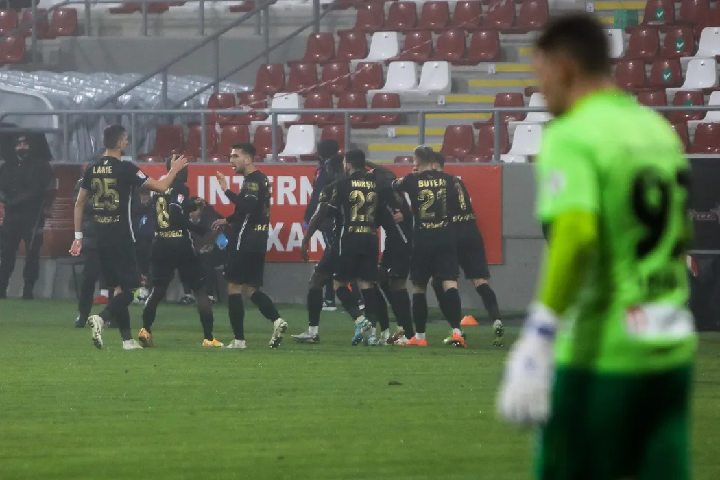 Bucuria jucatorilor de la Gaz Metan dupa marcarea unui gol in meciul de fotbal dintre UTA Arad si Gaz Metan Medias, contand pentru etapa a 10-a din Liga 1 Casa Pariurilor, desfasurat pe Arena Francisc Neuman din Arad, luni, 09 noiembrie 2020. © FOTO:Ciprian Petcut/SPORT PICTURES.