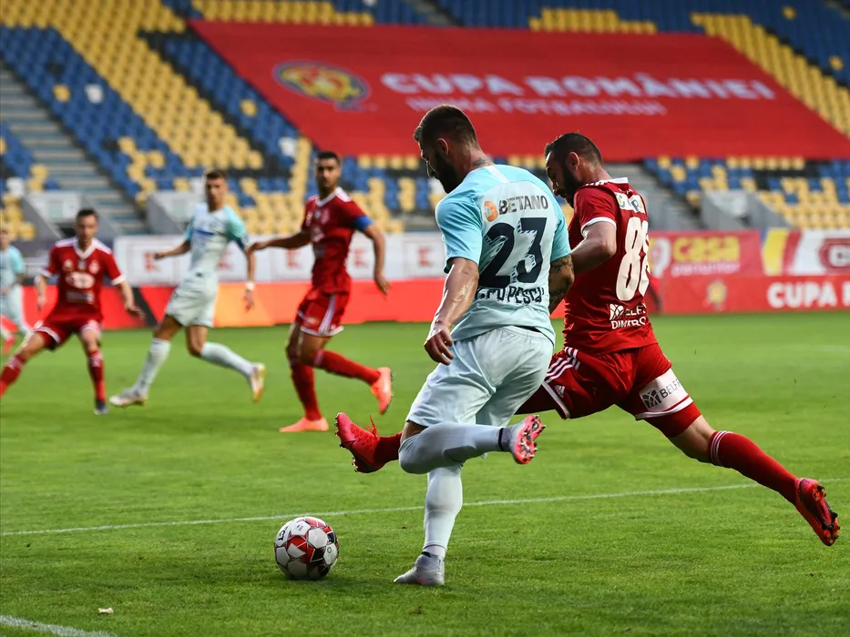 Ovidiu Popescu si Radoslav Dimitrov in meciul de fotbal dintre FCSB si Sepsi OSK Sfantu Gheorghe, finala Cupei Romaniei, disputat fara spectatori pe Stadionul Ilie Oana din Ploiesti, miercuri 22 iulie 2020. © FOTO:Razvan Pasarica/SPORT PICTURES