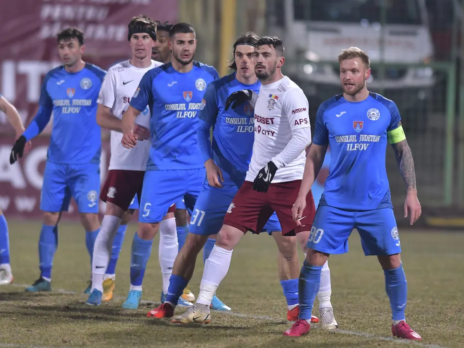 Mattias Kait, Catalin Andrei Ion, Mario Vrdoljak, Adrian Ionut Balan si Marcel Holzmann in meciul de fotbal dintre Rapid Bucuresti si Academica Clinceni, contand pentru Liga 1 Casa Pariurilor, desfasurat pe Stadionul Orasenesc din Mioveni, sambata 5 martie 2022. © FOTO:Razvan Pasarica/SPORT PICTURES