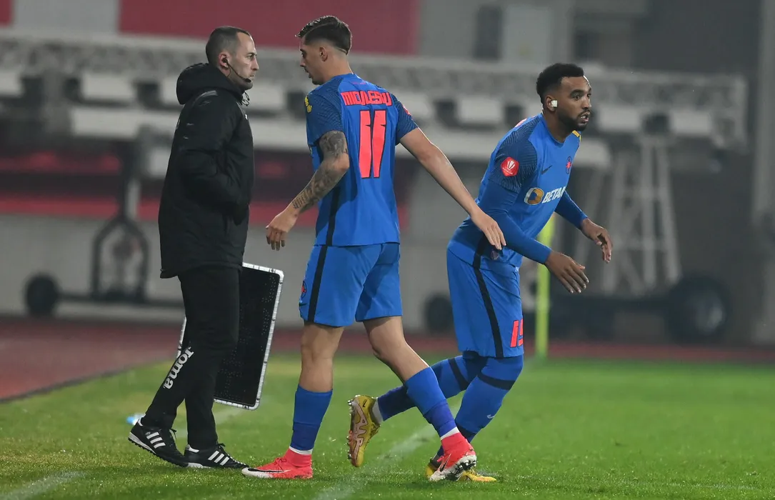 Abdel Slem Billel Omrani il inlocuieste pe David Raul Miculescu sub privirile arbitrului de rezerva Ionut Coza in meciul de fotbal dintre FC Hermannstadt si FCSB, contand pentru Superliga Superbet, desfasurat pe Stadionul Municipal din Sibiu, duminica 22 ianuarie 2023. © FOTO:Razvan Pasarica/SPORT PICTURES