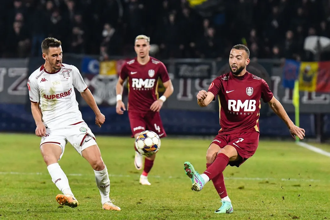 Omar El Kaddouri is in action during the match between CFR 1907 Cluj and FC Rapid 1923 Bucuresti at Dr. Constantin Radulescu Stadium in Cluj-Napoca, Romania, on February 10, 2024.
