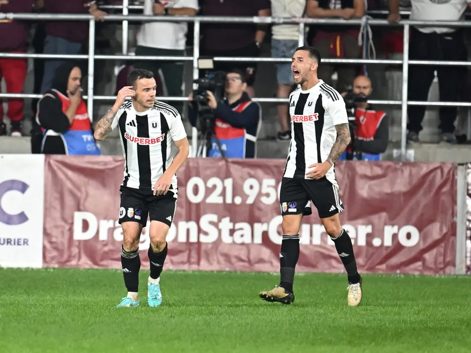Dan Nicolae Nistor se bucură dupa un gol marcat din penalty alături de Ovidiu Alexandru Bic in meciul de fotbal dintre Rapid Bucuresti si Universitatea Cluj, din cadrul Superligii Superbet, desfasurat pe Superbet Arena-Giulesti din Bucuresti, luni 16 septembrie 2024. © FOTO:Razvan Pasarica/SPORT PICTURES