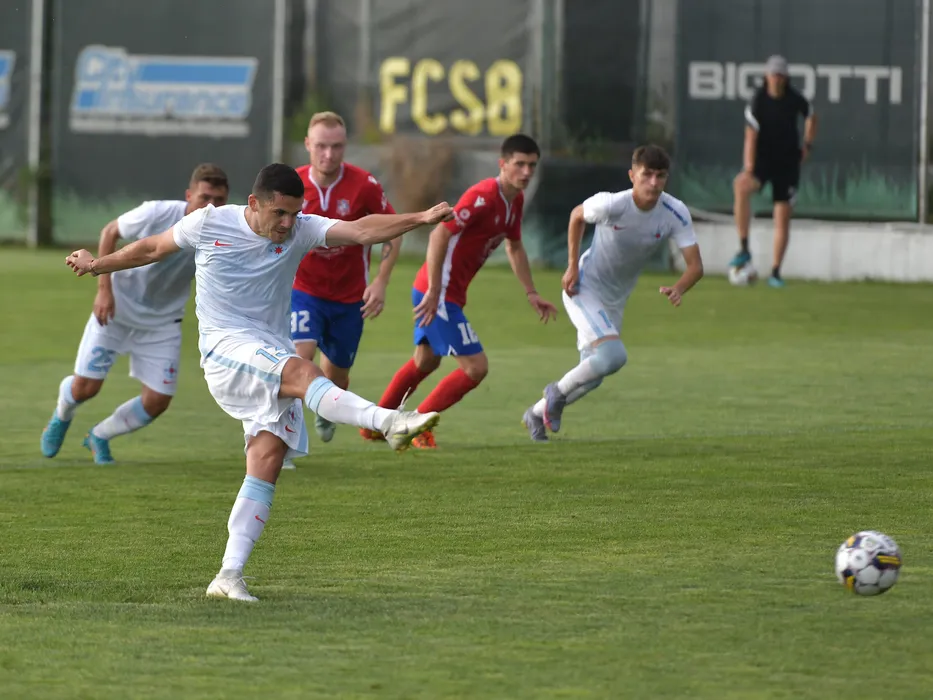 Ioan Andrei Vasile Dumiter marcheaza un gol din penalty in meciul amical de fotbal dintre FCSB si FC Sfantu Gheorghe, desfasurat la Baza FCSB din Berceni, miercuri 29 iunie 2022. © FOTO:Razvan Pasarica/SPORT PICTURES