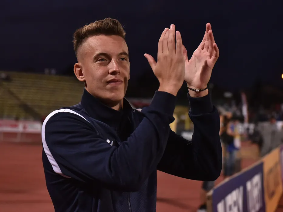 Mihai Alexandru Isfan aplauda publicul pitestean dupa victoria din meciul de fotbal dintre FC Arges si FC U Craiova, contand pentru Liga 1 Casa Pariurilor, desfasurat pe Stadionul Nicolae Dobrin din Pitesti, sambata 11 septembrie 2021. © FOTO:Razvan Pasarica/SPORT PICTURES