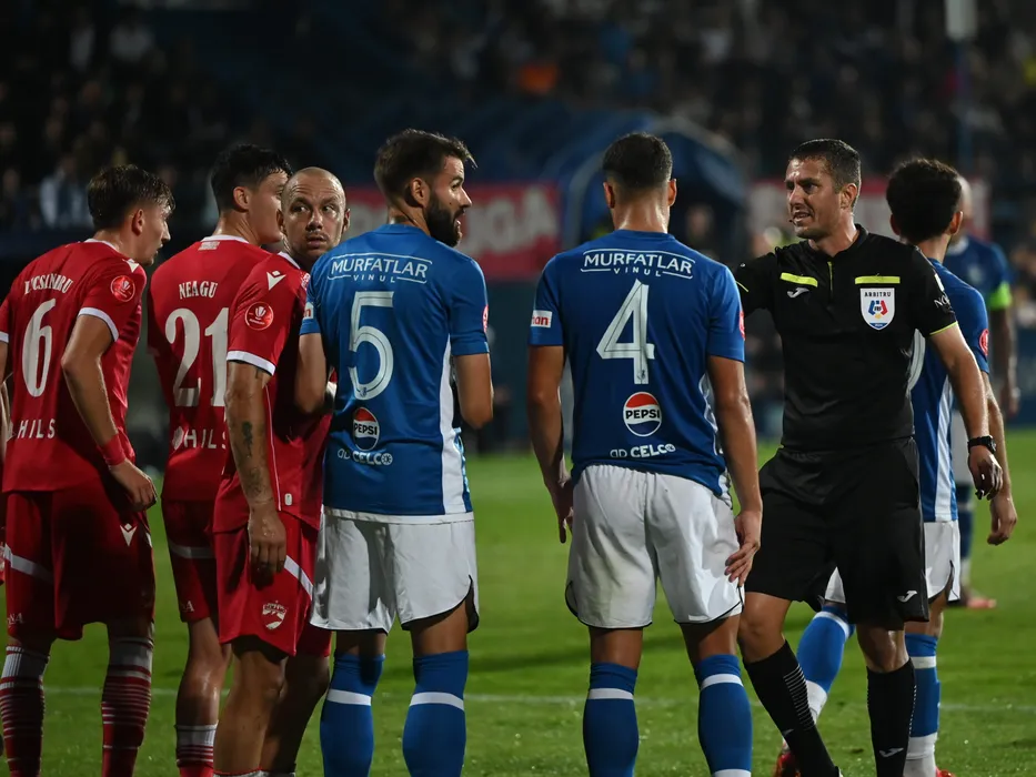 Arbitrul central Adrian Viorel Cojocaru alături de Mihail Cristian Licsandru, Patrick Haakon Olsen si Bogdan Ionut Tiru alături de arbitrul central Adrian Viorel Cojocaru in meciul de fotbal dintre Farul Constanta si Dinamo Bucuresti, contand pentru Superliga Superbet, desfasurat pe Stadionul central al Academiei Gheorghe Hagi din Ovidiu, vineri 4 octombrie 2024. © FOTO:Razvan Pasarica/SPORT PICTURES