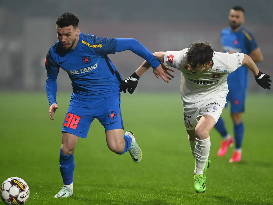 Andrei Ioan Cordea si Alexandru Laurentiu Oroian in meciul de fotbal dintre FC Hermannstadt si FCSB, contand pentru Superliga Superbet, desfasurat pe Stadionul Municipal din Sibiu, duminica 22 ianuarie 2023. © FOTO:Razvan Pasarica/SPORT PICTURES