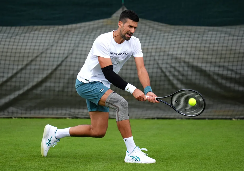24 June 2024, United Kingdom, London: Serbian tennis player Novak Djokovic practices during a training session at the All England Lawn Tennis and Croquet Club in Wimbledon ahead of the Wimbledon Championships. Photo: John Walton/PA Wire/dpa