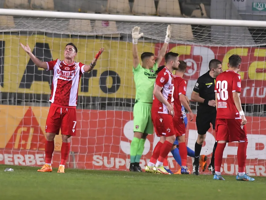 Steliano Filip reactioneaza in meciul de fotbal dintre Chindia Targoviste si Dinamo Bucuresti, contand pentru Play-out-ul Ligii 1 Casa Pariurilor, desfasurat pe Stadionul Ilie Oana din Ploiesti, vineri 1 aprilie 2022. © FOTO:Razvan Pasarica/SPORT PICTURES