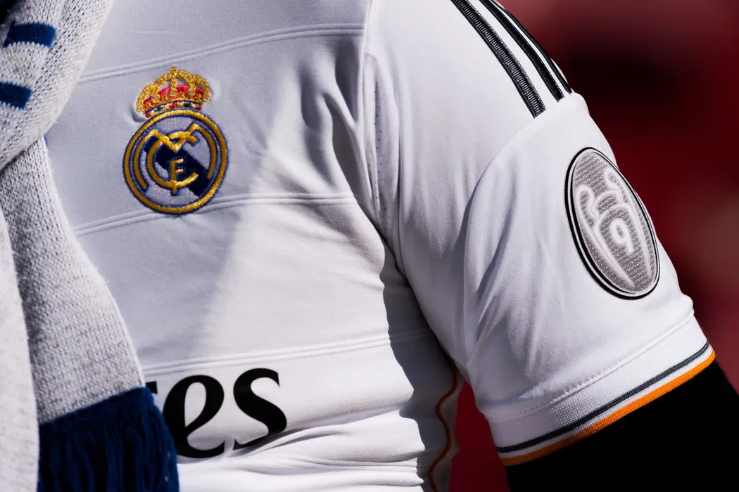A Real Madrid fan wearing a Champions League shirt with the 9 times winners sleeve badge. Real Madrid seek their 10th title tonight against Atletico Madrid