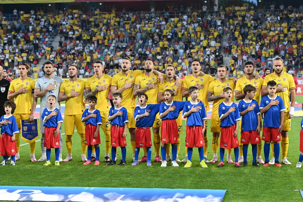 Fotbalistii romani la startul meciului amical de fotbal dintre Romania si Liechtenstein, desfasurat pe Stadionul Steaua din Bucuresti, vineri 7 iunie 2024. © FOTO:Razvan Pasarica/SPORT PICTURES