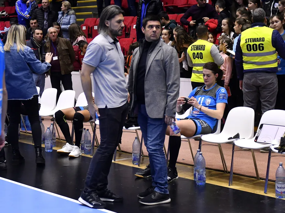 Adrian Vasile si Vlad Enachescu dupa meciul de handbal feminin dintre CSM Bucuresti si HC Zalau, contand pentru Liga Florilor, desfasurat in Sala Polivalenta-Ioan Kunst Ghermanescu din Bucuresti, duminica 19 ianuarie 2019. © FOTO:Razvan Pasarica/SPORT PICTURES