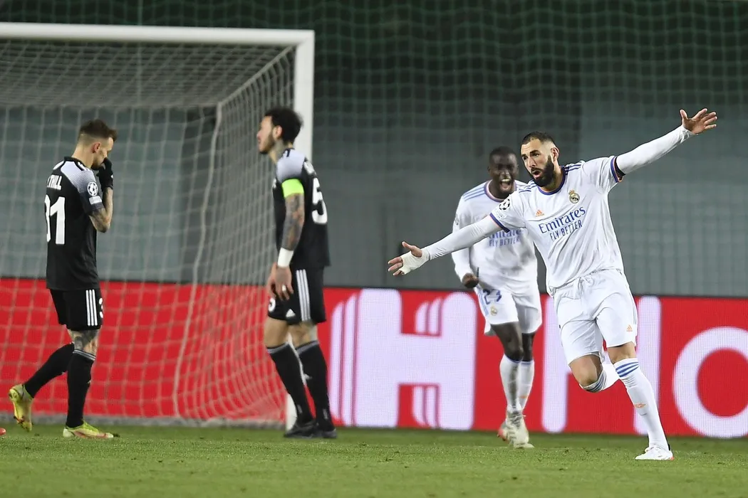 Karim Benzema of Real Madrid celebrates scoring the third goal Sheriff Tiraspol v Real Madrid, UEFA Champions League Group D, Sheriff Stadium, Tiraspol, Transnistria, Moldova - 24 Nov 2021,Image: 644737052, License: Rights-managed, Restrictions: , Model Release: no, Credit line: Profimedia