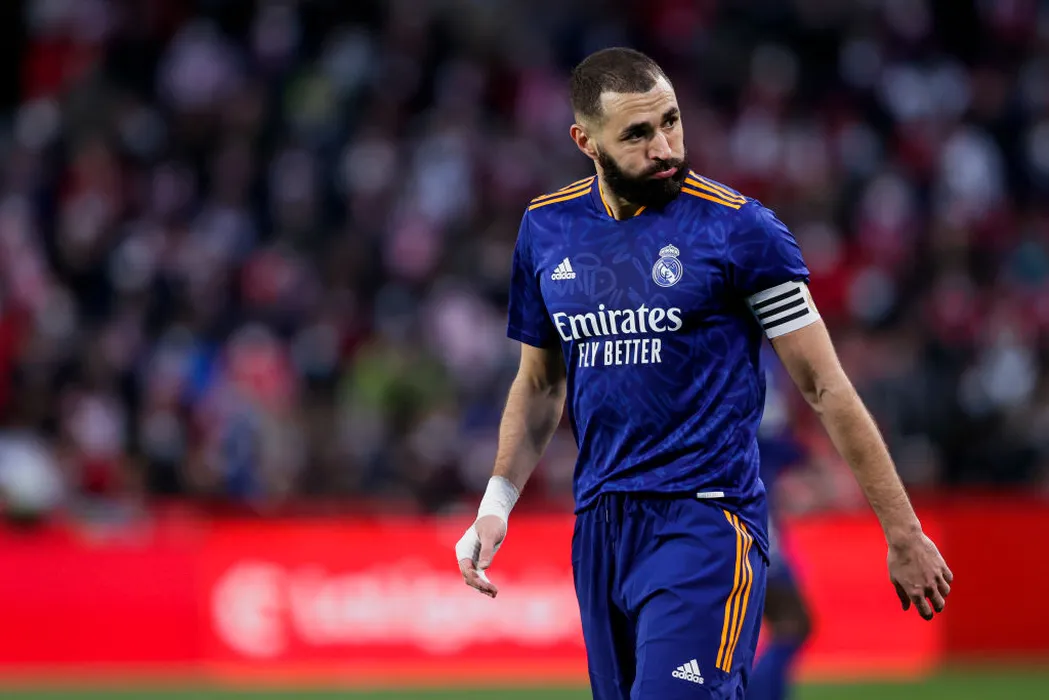 GRANADA, SPAIN - NOVEMBER 21: Karim Benzema of Real Madrid during the La Liga Santander match between Granada v Real Madrid at the Estadio Nuevo Los Carmenes on November 21, 2021 in Granada Spain (Photo by David S. Bustamante/Soccrates/Getty Images)