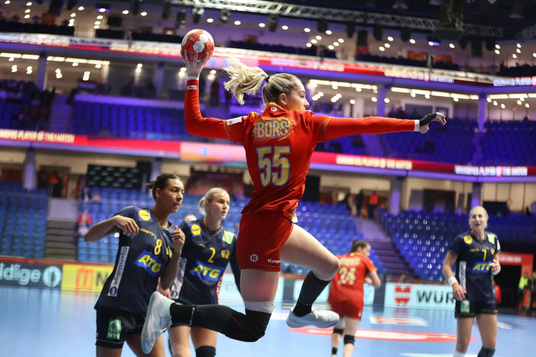 Oana Doina Borș și Jamina Roberts în meciul de handbal dintre Suedia și România, contând pentru EHF EURO 2024, desfășurat in Sala Sporturilor Fönix Csarnok din Debrecen, vineri 6 decembrie 2024. © FOTO: Sorin PANĂ/SPORT PICTURES