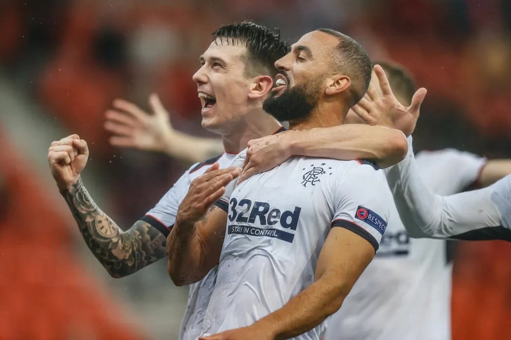 Rangers' Kemar Roofe celebrates after scoring during a soccer match between Belgian team Standard de Liege and Scottish club Rangers FC, Thursday 22 October 2020 in Liege, on the first day of the group phase (group D) of the UEFA Europa League competition. BELGA PHOTO BRUNO FAHY,Image: 565068575, License: Rights-managed, Restrictions: , Model Release: no