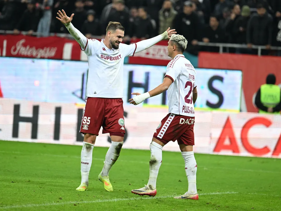 Elvir Koljic se bucură dupa un gol marcat alături de Cristian Marian Manea in meciul de fotbal dintre Dinamo Bucuresti si Rapid Bucuresti, din cadrul Superligii Superbet, desfasurat pe Arena Nationala din Bucuresti, duminica 19 octombrie 2025. © FOTO:Razvan Pasarica/SPORT PICTURES