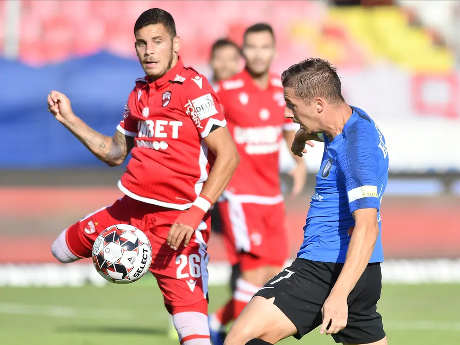 Kristian Kostrna si Vlad Alexandru Achim in meciul de fotbal dintre Dinamo Bucuresti si FC Viitorul Constanta, contand pentru play-out-ul Ligii 1 Casa Pariurilor, disputat fara spectatori pe Stadionul Dinamo din Bucuresti, miercuri 5 august 2020. © FOTO:Razvan Pasarica/SPORT PICTURES