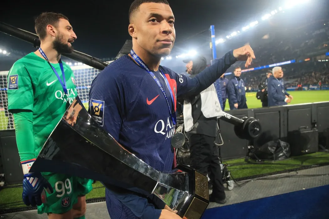 PSG's forward Kylian Mbappe holds the trophy at the end of the French Champions' Trophy (Trophee des Champions) football match between Paris Saint-Germain (PSG) and Toulouse FC the Parc des Princes stadium in Paris, FRANCE - 03/01/2024.//JEE_trophe.12/Credit:J.E.E/SIPA/2401042348,Image: 834304651, License: Rights-managed, Restrictions: , Model Release: no