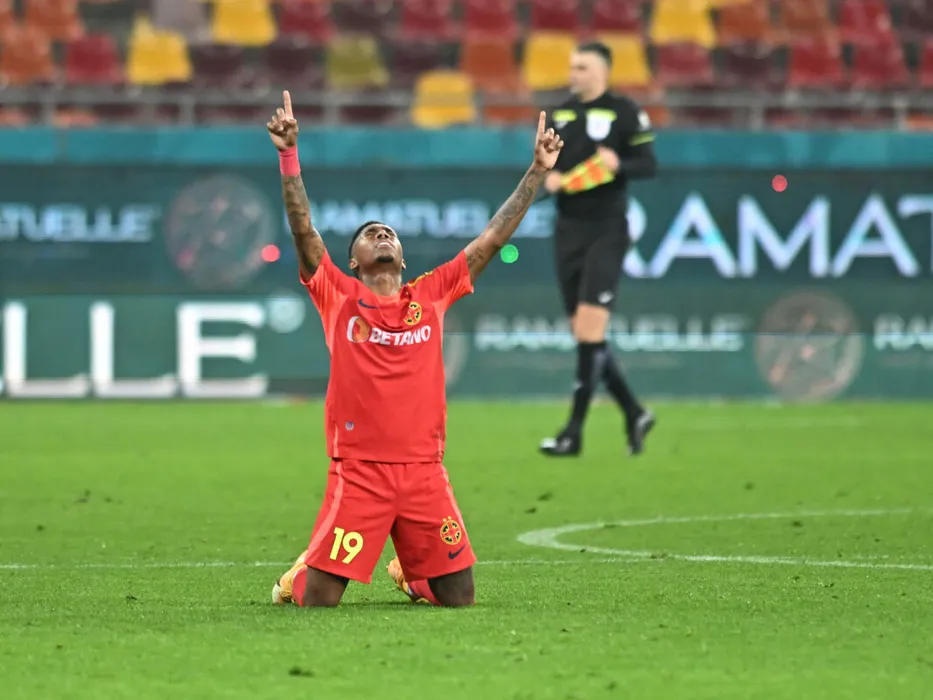 Luis Phelipe De Souza Figueiredo multumeste Divinitatii dupa meciul de fotbal dintre FCSB si Petrolul Ploiesti, contând pentru Superliga Superbet, desfășurat pe Arena Nationala din Bucuresti, duminica 3 martie 2024. © FOTO: Răzvan PĂSĂRICĂ/SPORT PICTURES