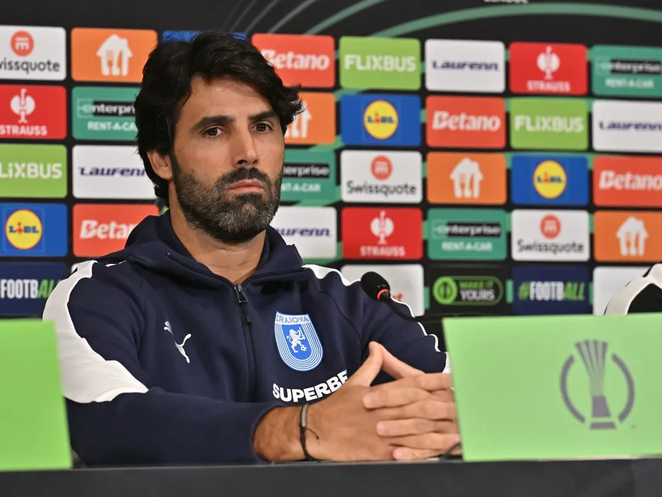 Filipe Amaral Rino Coelho participa la conferinta de presa de dinaintea meciului cu FSV Mainz 05, contand pentru Conference League , desfasurata la Stadionul Ion Oblemenco din Craiova, miercuri 26 noiembrie 2025. © FOTO:Remus Badea/SPORT PICTURES