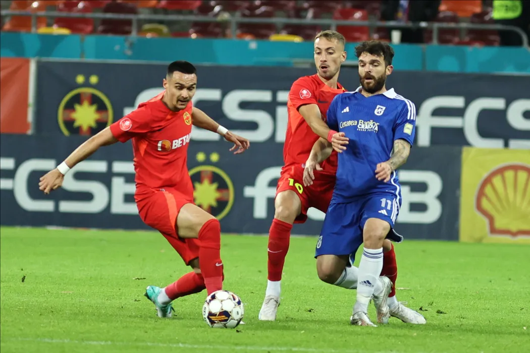 Adrian Gheorghe Sut, Mihai Daniel Lixandru si Aurelian Ionut Chitu in meciul de fotbal dintre FCSB si FC U Craiova, din cadrul Superligii Superbet, desfasurat pe Arena Nationala din Bucuresti, duminica 12 noiembrie 2023. © FOTO:Gheorghe Fluster/SPORT PICTURES