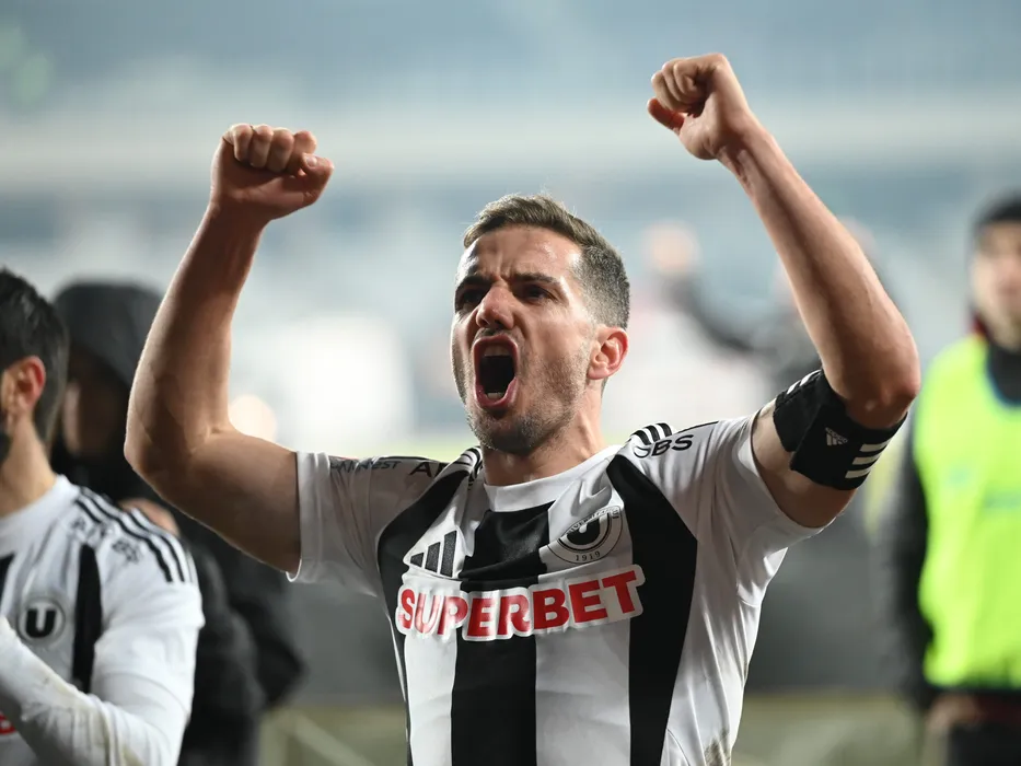 Mihaita Alexandru Chipciu canta alături de galerie dupa meciul de fotbal dintre Universitatea Cluj si CFR Cluj, contând pentru Superliga Superbet, desfășurat pe Cluj Arena din Cluj Napoca, luni 9 decembrie 2024. © FOTO:Răzvan Pasarica/SPORT PICTURES