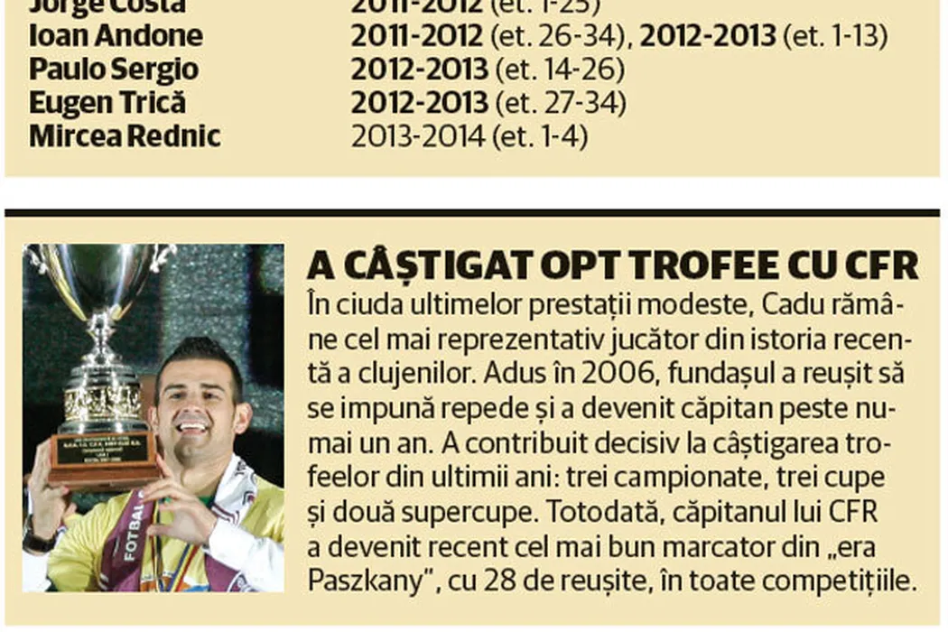 La CFR nu mai e loc de statui! După meciul cu Steaua, „omul-trofeu” a fost trecut pe lista neagră la CFR! Motivele decăderii lui Cadu
