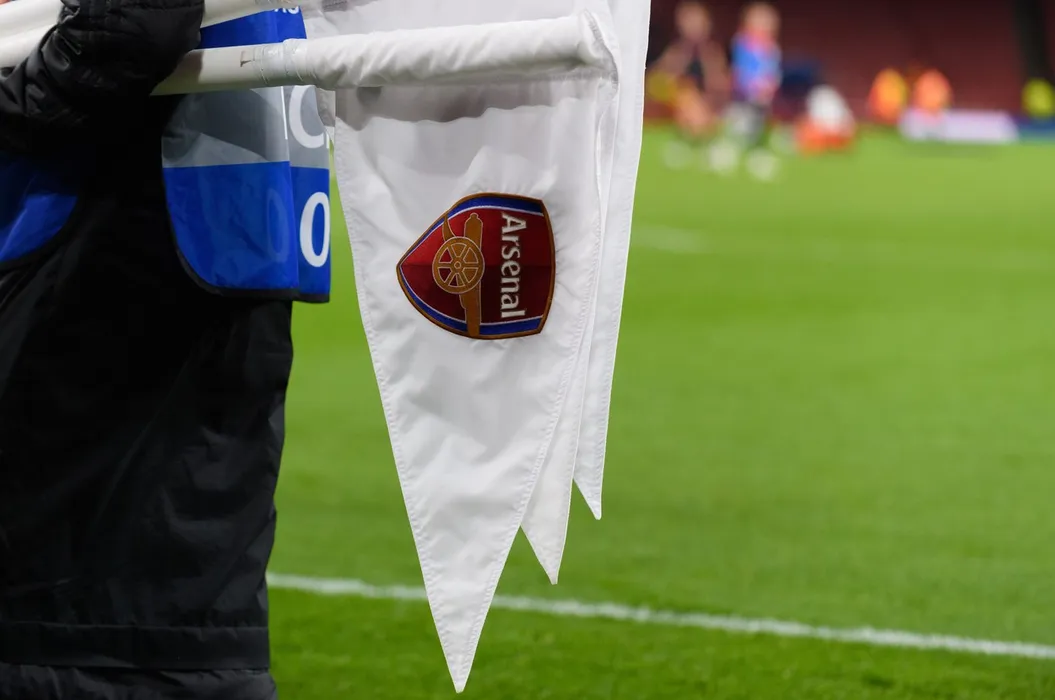 Corner flags with Arsenal logo been carried away after the UEFA Womens Champions League quarter final match between Arsenal FC and FC Bayern Munich at Emirates Stadium in London, England. (Sven Beyrich/SPP)