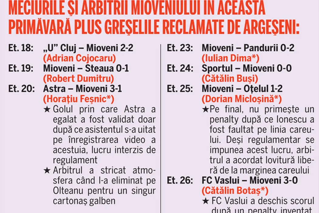 Laboratorul CCA și cobaiul Mioveni!** Profitând că sunt aproape retrogradați, argeșenii au primit 5 arbitri debutanți în ultimele 7 meciuri