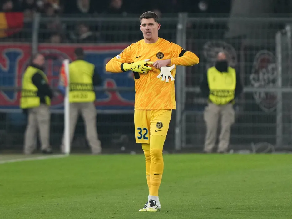 Stefan Tarnovanu paraseste terenul eliminat in meciul de fotbal dintre FC Basel si FCSB, contand pentru UEFA Europa League, desfasurat pe Stadionul St. Jakob-Park din Basel, joi 6 noiembrie 2025. © FOTO:Marius Tudor/SPORT PICTURES