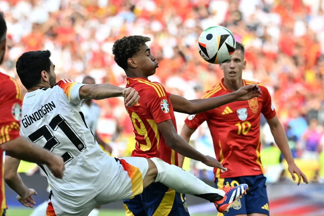 STUTTGART, GERMANY - JULY 05: Ilkay Gundogan of Germany and Lamine Yamal of Spain during the UEFA Euro 2024 quarter-final football match between Spain and Germany at the Stuttgart Arena in Stuttgart on July 5, 2024. Gokhan Balci / Anadolu/ABACAPRESS.COM
