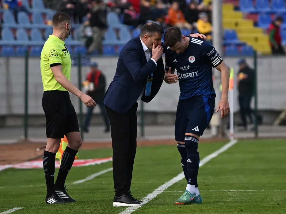 Laszlo Gyorgy Balint dandu-i indicatii lui Diego Zivulici langa Arbitrul de rezerva Robert Avram in meciul de fotbal dintre FC Botosani si SC Otelul Galati, contand pentru Superliga Superbet - Play-Out, desfasurat pe Stadionul Municipal din Botosani, luni 14 aprilie 2025. © FOTO: Tudi/SPORT PICTURES