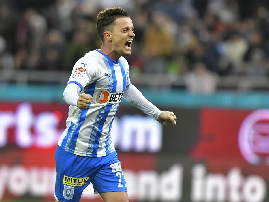 Gustavo Vagenin se bucura dupa dictarea unui penalty pentru craioveni in meciul de fotbal dintre FCSB si Universitatea Craiova, contand pentru Play-off-ul Ligii 1 Casa Pariurilor, desfasurat pe Arena Nationala din Bucuresti, duminica 3 aprilie 2022. © FOTO:Razvan Pasarica/SPORT PICTURES
