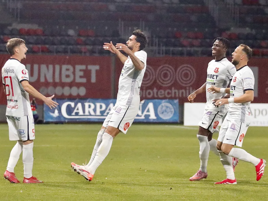 Antreas Karo se bucura dupa un gol marcat in meciul de fotbal dintre AFC Hermannstadt Sibiu si SC Otelul Galati, contand pentru Superliga Superbet, desfasurat pe Stadionul Municipal din Sibiu, duminica 2 noiembrie 2025. © FOTO:Valentin Macrea/SPORT PICTURES